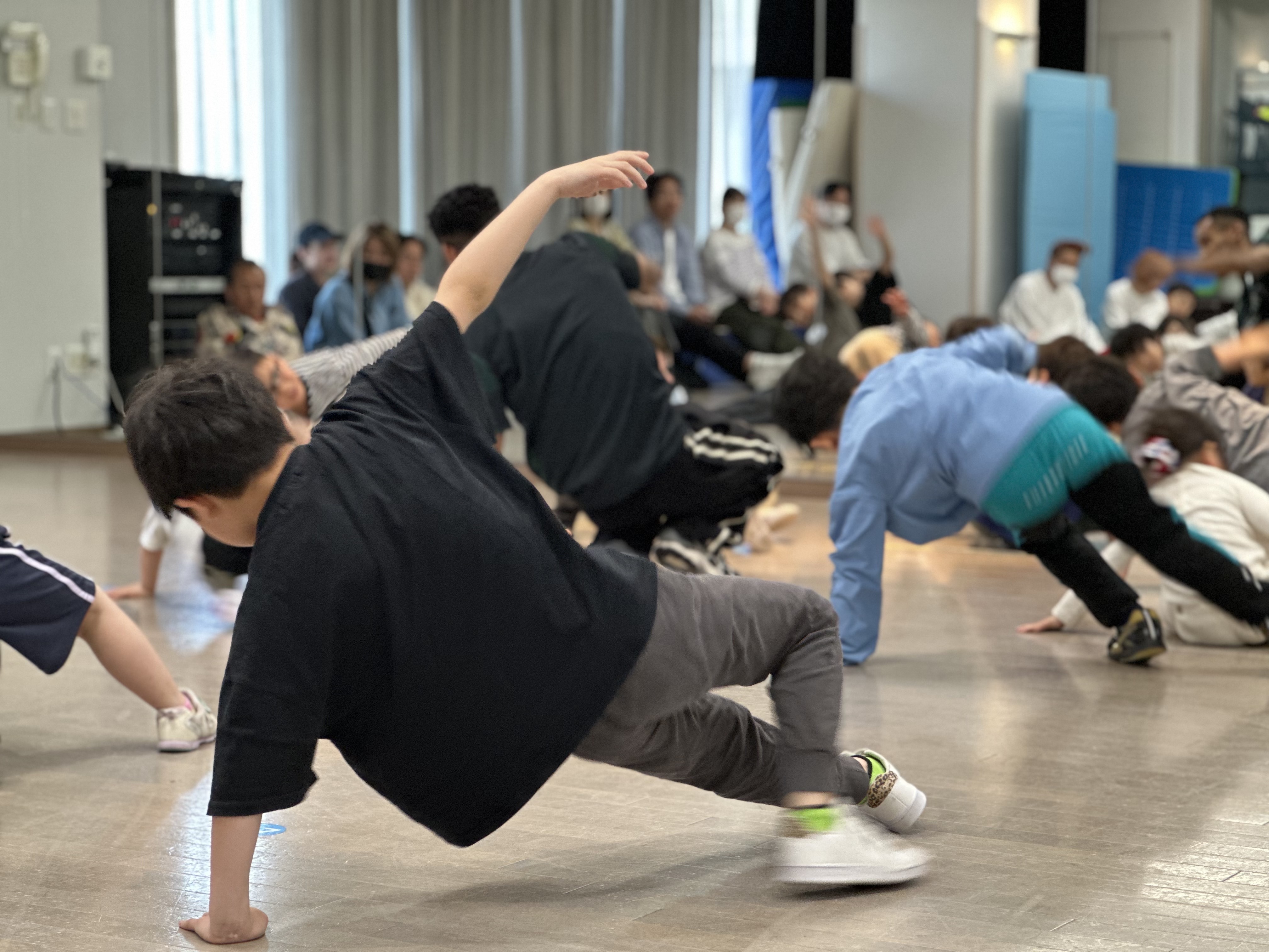 ブレイキンは上半身・体幹・下半身をすべて使う全身運動。水泳やサッカーに匹敵する高い運動量で、総合的な体力を鍛えます。